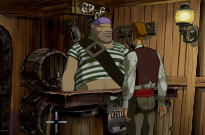 | Jacqueline: | Overall, the game uses an animated style vaguely reminiscent of Dragon's Lair. I guess it's about time... Dragon's Lair was, what? Twenty-four years ago... it's about time designers and personal computers caught up. (Granted, I've probably missed other games with well-executed animated graphics for PCs. Whatever.)